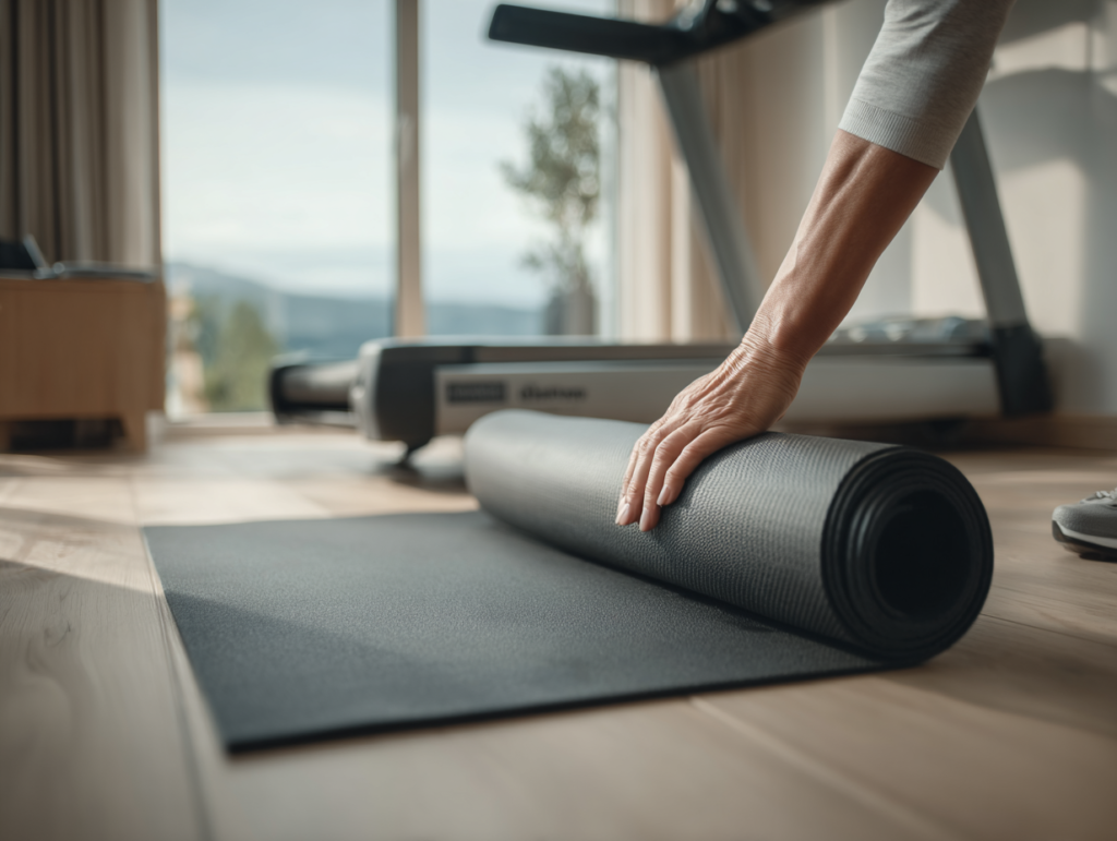 En støjdæmpende gummimåtte under walking padden er den enkeltforanstaltning, der giver størst effekt. Vælg minimum 6–10 mm tykke modeller fremstillet af massivt EVA-skum eller naturlig gummi – og sørg for at den er mindst 20 cm bredere og længere end selve walking padden. Specialdesignede fitness-måtter er klart bedre end universalmåtter fra DIY-butikker.